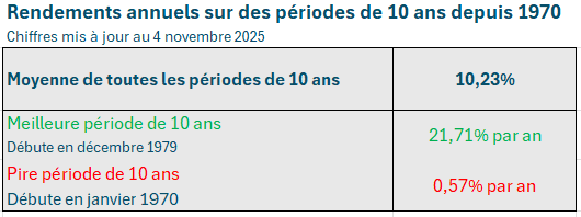 Ces chiffres replacent la performance récente du fonds dans une perspective plus large. Un rendement annuel de 10,62 % est supérieur à la moyenne, mais pas exceptionnel au regard de l’histoire à long terme des marchés d’actions mondiaux.